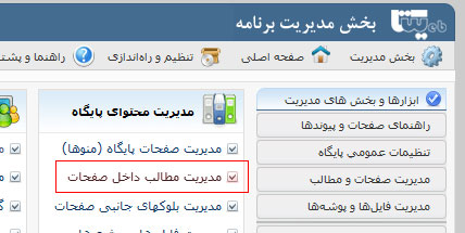در بسیاری از بخش های برنامه مثل مدیریت صفحات یا مدیریت مطالب لینک مشاهده هر آیتم در کنار آن درج شده است. شما می توانید نشانی های مورد نظر خود را کپی کرده و در کادر مربوطه درج کنید. برای مشاهده لینک صفحات و ابزارها و فرم های برنامه می توانید از منوی راهنمای صفحات و پیوندها استفاده کنید.