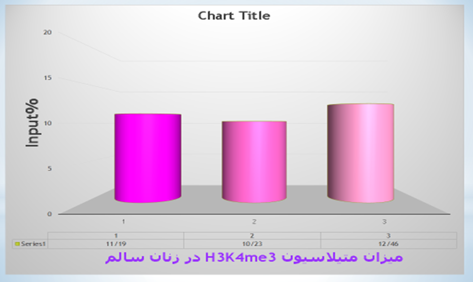 In order to perform the Chip examinations, we had to normalize the IP samples containing chromatin, which were bound to the antibodies of H3K4me3-specific epigenetic marker and input samples containing total chromatin. The literature review indicated the lack of consensus on the normalization of the ChIP-qPCR data. Therefore, various normalization methods were used in this regard, and the results were estimated using the input percentage method, SPSS, and statistical tests. Moreover, the qPCR signals that were obtained from the ChIP samples were extracted from the qPCR signals, which had been obtained from the input samples at the outset of the ChIP method, and placed in the following equation: