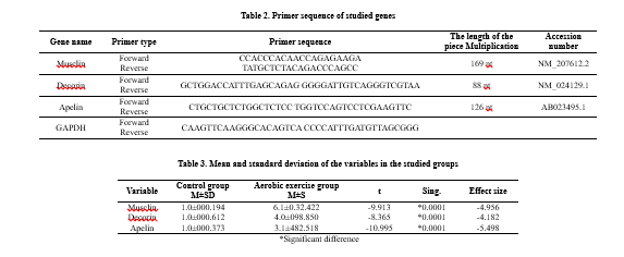 15. Farahani SZ, Nazar Ali P, Rahmani H. The effect of high intensity interval training on Musclin and insulin in overweight female students [Master Thesis]. Tehran: Al-Zahra University; 2016.